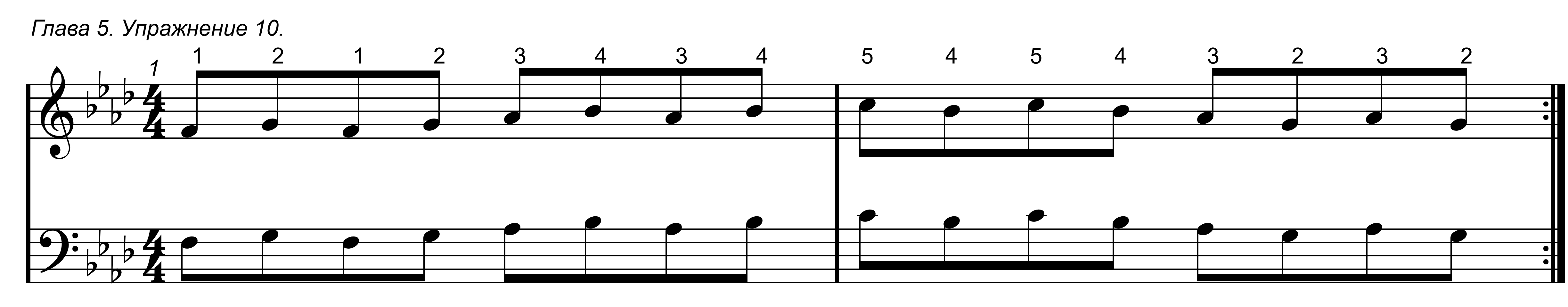 P.S. Аппликатуру я писать не стал, потому что тут все элементарно и очевидно. Левой рукой начинаете с 5 пальца, а правой с 1.