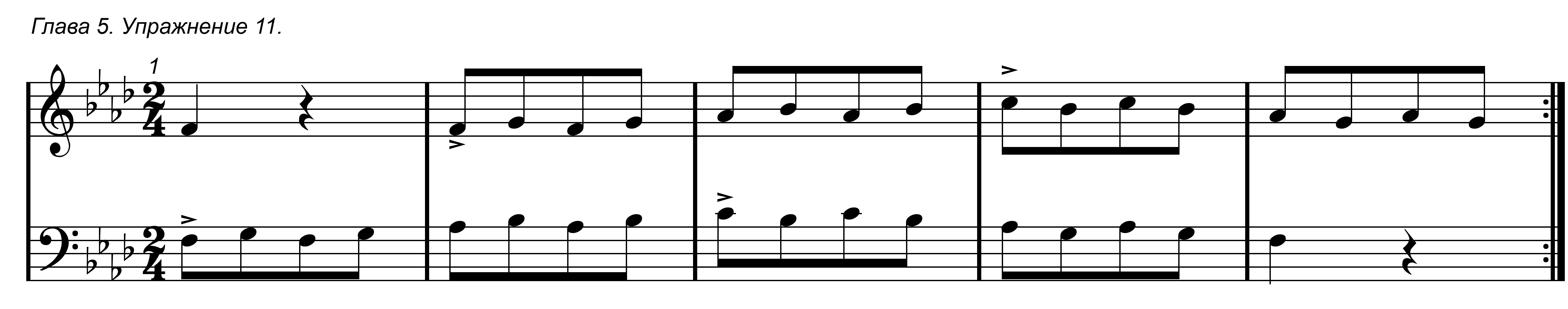 Очередное простое упражнение, поэтому аппликатуру подберите сами. И не забывайте про акценты.