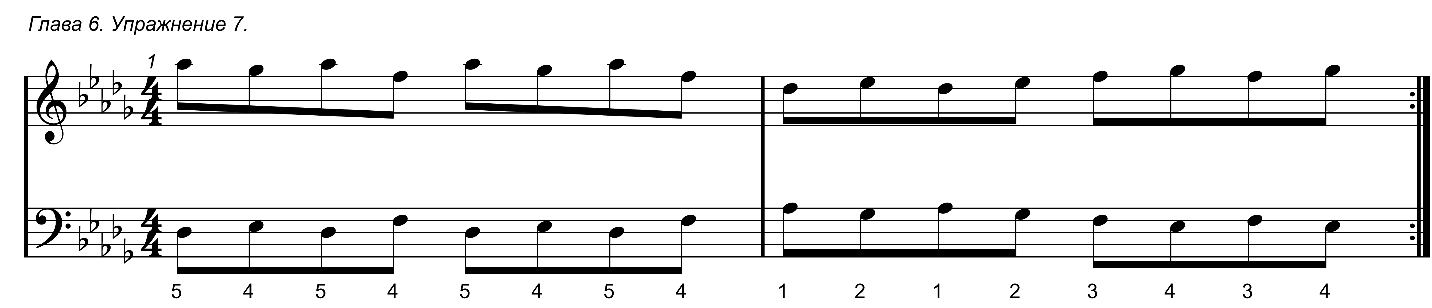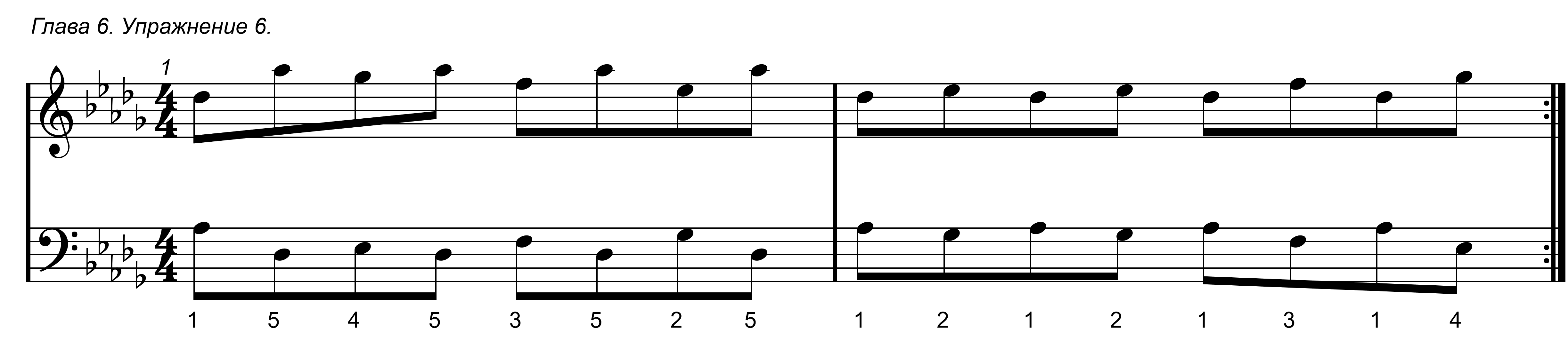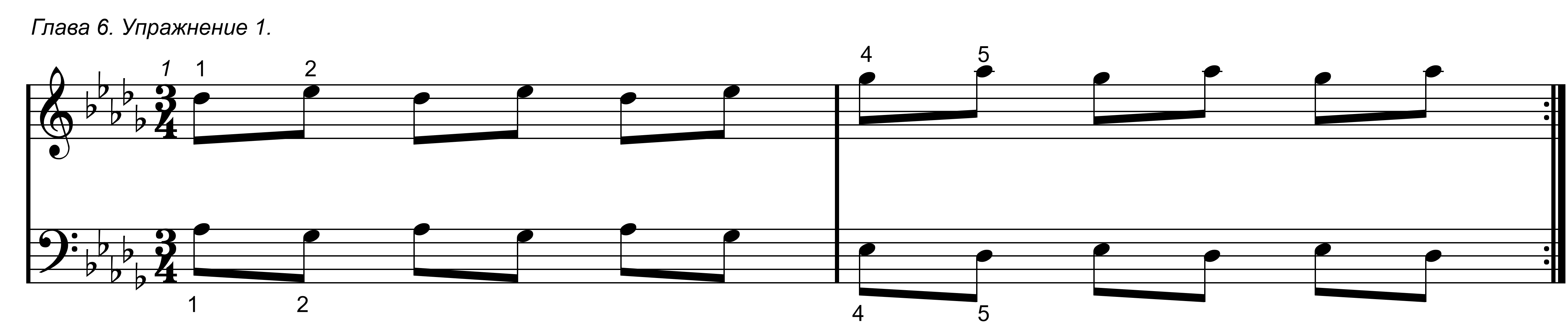 Первое упражнение в данной главе простое, в нем задействованы только 1 и 2 пальцы обоих рук.