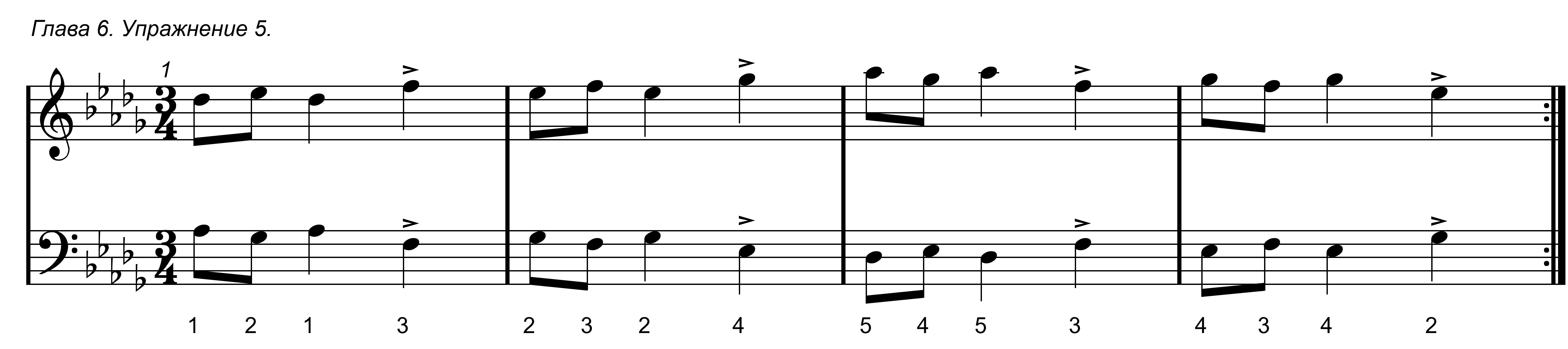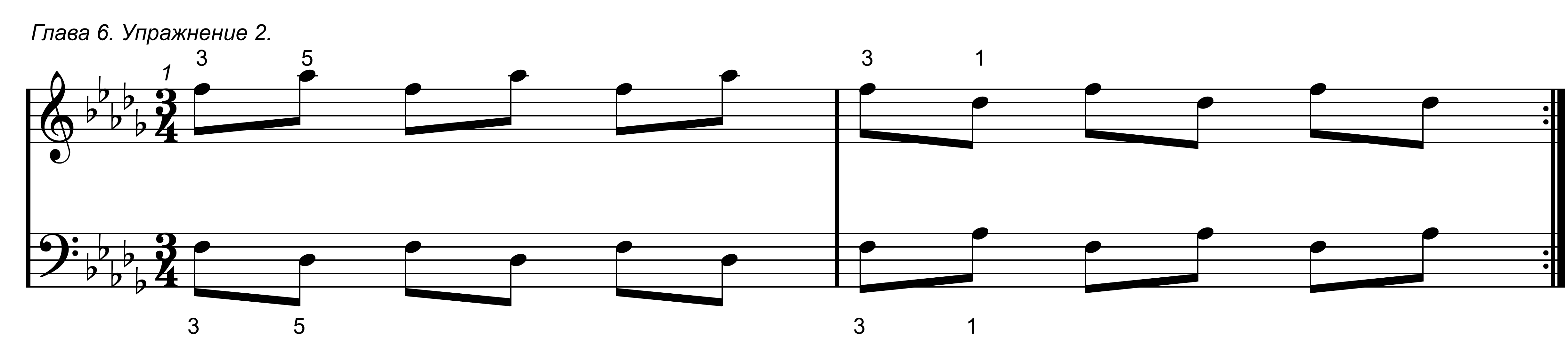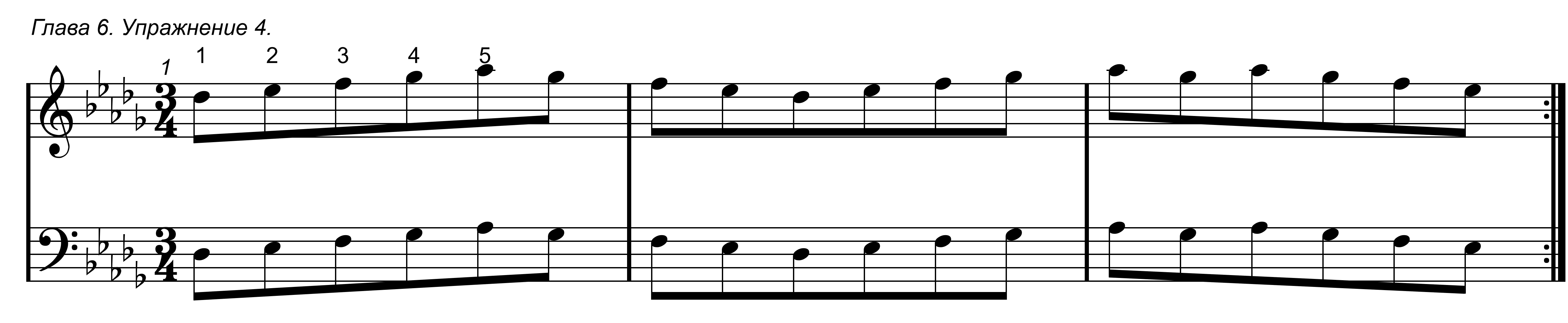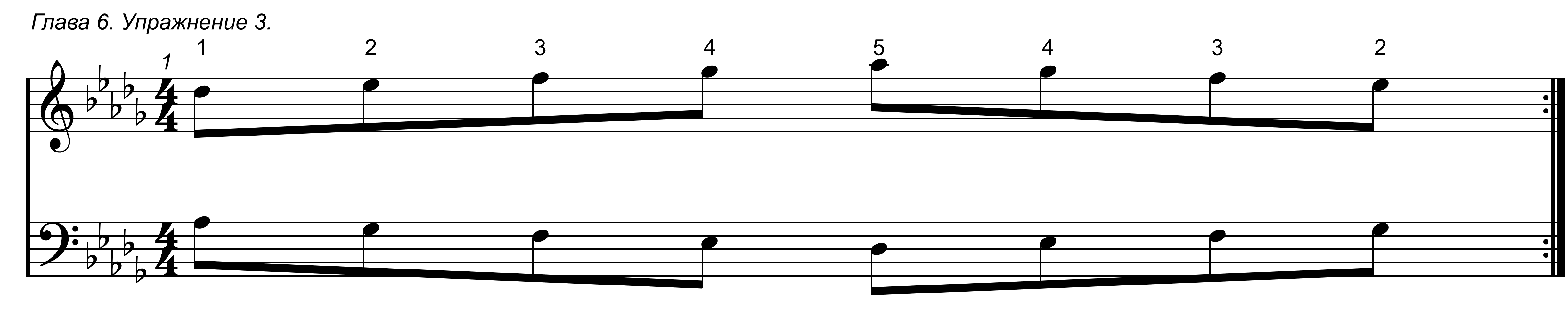 Первое упражнение в данной главе простое, в нем задействованы только 1 и 2 пальцы обоих рук.