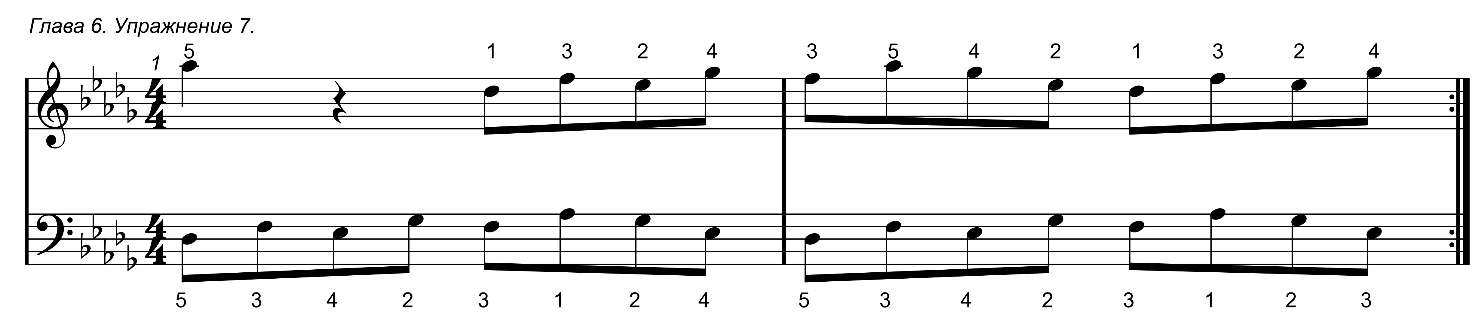 Первое упражнение в данной главе простое, в нем задействованы только 1 и 2 пальцы обоих рук.